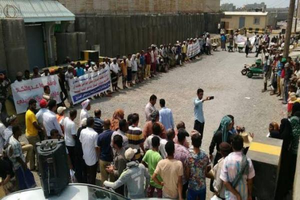 عمال وموظفو ميناء عدن ينفذون وقفة احتجاجية