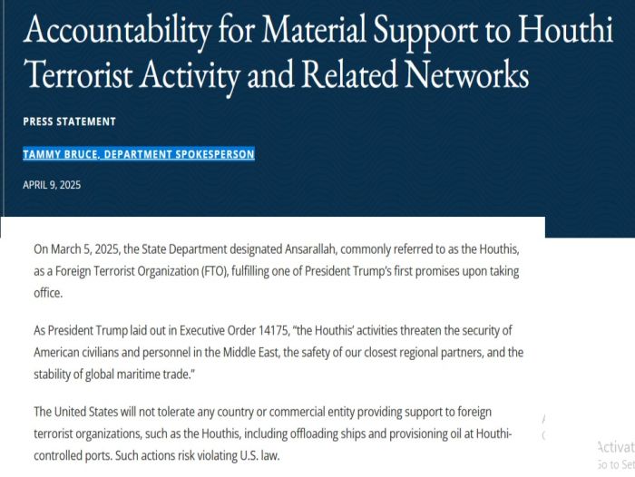 Accountability for Material Support to Houthi Terrorist Activity and Related Networks