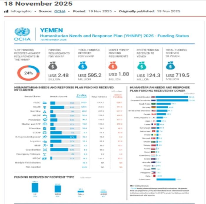 OCHA: only 24% of funding required received for Yemen Humanitarian Needs and Response Plan