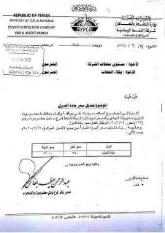 رفع أسعار مادة الديزل في وادي وصحراء حضرموت