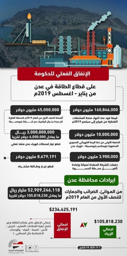 أكثر من 160 مليون دولار إنفاق حكومي لقطاع الطاقة في عدن