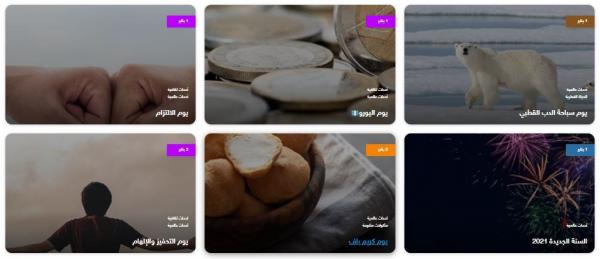 ويجمع التقويم الجديد أغلب الأيام المحلية والعالمية في مجالات مثل الصحة، الفن، الطعام، الدين، الترفيه، الرياضة، الطبيعة، وغيرها.