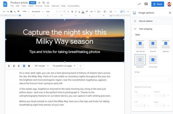 أضافت خدمة مستندات جوجل ميزة جديدة تتيح للمستخدمين إضافة النصوص على الصور في الملفات، لتعيد بذلك الأذهان لما توفره مايكروسوفت منذ ما يزيد عن عقدين من الزمن على برنامج وورد.