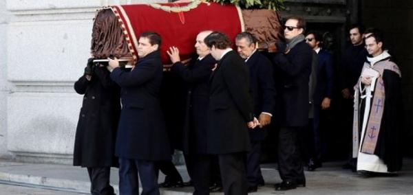 وقد وصلت الرفات بطائرة هليكوبتر إلى المقبرة العائلية في شمالي مدريد وتعتزم الأسرة إقامة قداس خاص خلال عملية الدفن.