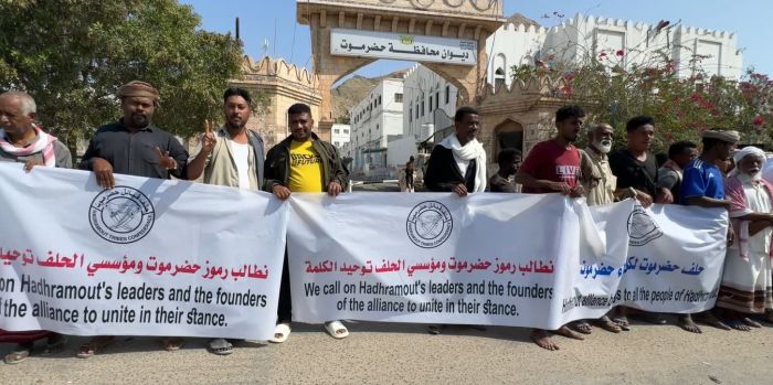 وفي الوقفة التي شارك فيها عدد من قيادات حلف قبائل حضرموت ومؤسسيه وجمع من المواطنين، رفع المحتجون شعارات طالبوا فيها مجلس القيادة الرئاسي بالتدخل العاجل وتنفيذ خطة تطبيع الأوضاع بحضرموت ووقف العبث الحاصل بالمحافظة ورفع النقاط العشوائية المسلحة.