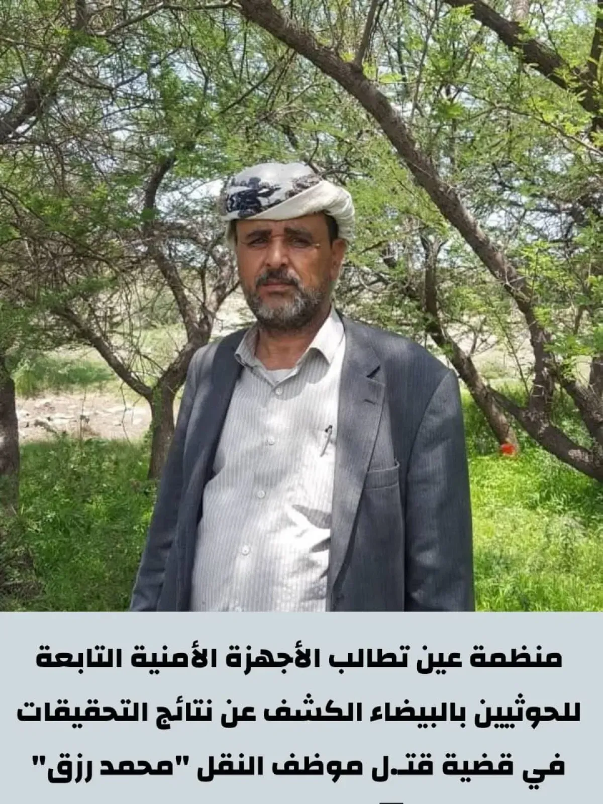 The "Ain for Human Rights" organization has expressed profound concern regarding the persistent stalling and generalized security approach adopted by the Houthi militia in Al-Bayda Governorate concerning the case of citizen Mohammed Rizq, an employee at the Radaa Transport Office, who was killed while performing his official duties approximately three and a half months ago. In a statement issued on Friday, the organization affirmed that the victim's body remaining in the freezer of Dhamar Hospital for this duration, without completion of legal procedures to allow his family to bury him, constitutes a flagrant violation of human dignity and an exacerbation of psychological harm to his relatives. The organization noted that this unjustified delay raises serious doubts regarding the legal trajectory of the case. The organization relayed that the family of the victim, Mohammed Rizq, holds senior Houthi security leaders in the governorate fully responsible, specifically naming the Director of Criminal Investigation, Mohammed Mahmoud Al-Khatib (Abu Sakhr), and the Governor's Police Director, Ahmed Abdullah Al-Sharafi (Abu Hamza), accountable for what they termed "tampering with the case" and failing to disclose investigation results to the public despite the passage of sufficient time. The statement clarified that "unofficial" announcements regarding the apprehension of suspects lack credibility and transparency, given the absence of any official security communiqué detailing the perpetrators' identities, the nature of the evidence, or the legal process followed. This reinforces the family's fears of attempts to dilute the case and ensure the perpetrators escape accountability. Ain emphasized that the right to life is a moral and legal obligation resting upon the de facto authorities, warning that any failure to achieve criminal justice in serious crimes entails direct legal responsibility for the supervising entities. The organization concluded its statement by demanding that the Houthi authorities in Al-Bayda issue a detailed official report clarifying the investigation findings and relinquish control over the case to allow swift justice to proceed, free from any extra-legal considerations, asserting that impunity threatens social peace and institutionalizes a culture of disregard for Yemeni lives. |