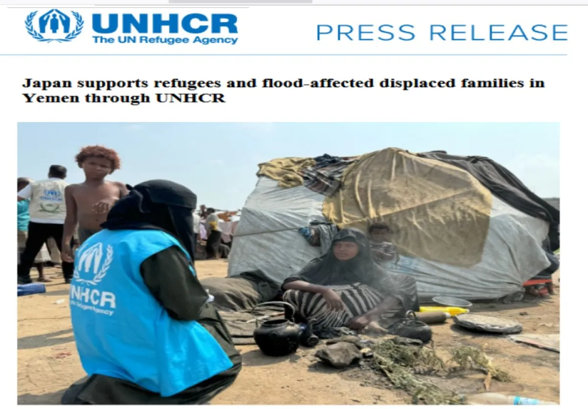 The Government of Japan has contributed US$5.3 million (approximately ¥800 million) to support the United Nations UN High Commissioner for Refugees (UNHCR)’s response to the urgent needs of refugees, internally displaced people (IDPs), and host communities in Yemen. A press release by UNHCR stated that Yemen continues to face one of the world’s most severe humanitarian crises in 2026, when an estimated 22.3 million people require humanitarian assistance, including 5.2 million internally displaced people and more than 63,000 refugees and asylum seekers. The press release clarified that Japan’s support will help UNHCR respond to two pressing challenges. The first is the growing impact of climate-related shocks. In 2025, devastating floods affected more than 460,000 people, damaging displacement sites and destroying shelters in areas already vulnerable to seasonal rains. The second is the worsening situation of refugees and asylum seekers, many of whom are facing deepening poverty and increasingly rely on harmful coping strategies, such as skipping meals or delaying needed medical care |