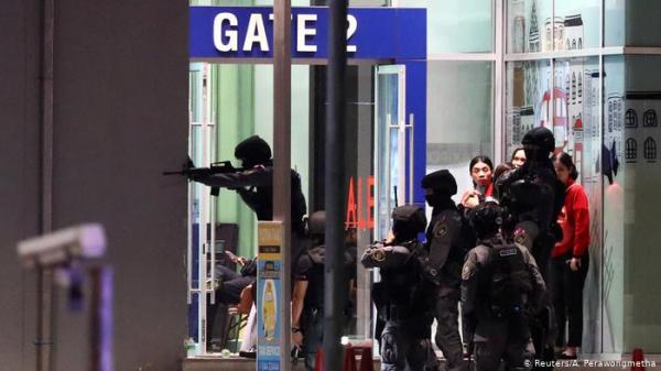 وكانت الشرطة، أعلنت أنها تمكنت من قتل الجاني بعد 12 ساعة من المواجهة، وهو جندي يدعى جاكرابانت توما (32 عاما) حيث كان قد سرق بندقية من قاعدة عسكرية في المدينة وقتل في البداية قائده وشخصين آخرين ثم فر بواسطة سيارة عسكرية، ليدخل لاحقا إلى المركز التجاري ويطلق النار بشكل مكثف على الحاضرين أمس السبت، وأعلن رئيس الوزراء برايوت تشان أوتشا في وقت سابق من اليوم أن مطلق النار كان يعاني من مشاكل شخصية مرتبطة ببيع منزل.