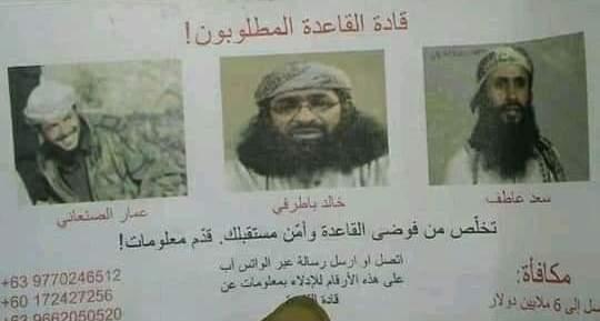 وتضمنت المنشورات الملقاة في "يكلا" أسماء وصور قادة في التنظيم مطلوبون وهم: خالد باطرفي، وسعد عاطف، وعمار الصنعاني، بالإضافة الى أرقام للتواصل.