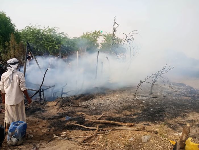 الحديدة | حريق يلتهم منزل نازح في مخيم البادي بالخوخة