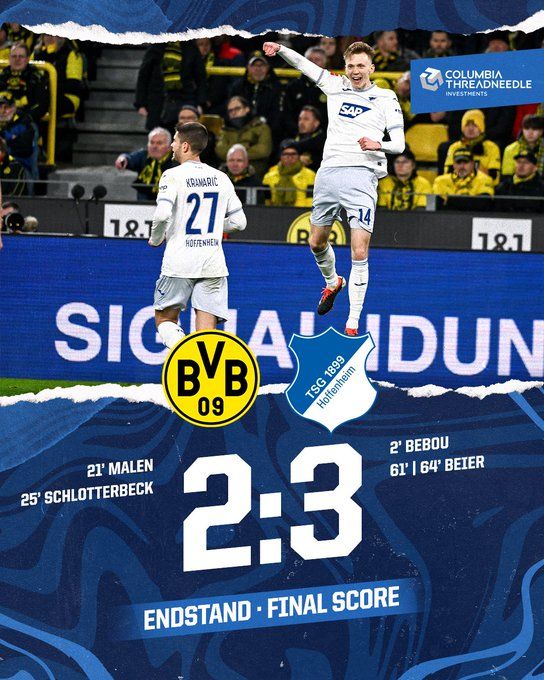 بوروسيا دورتموند يسقط بثلاثية وسط جماهيره ضد هوفنهايم فى الدورى الألمانى