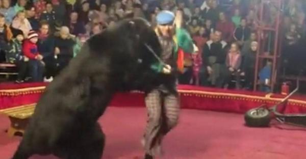 دب يثور على مدربه أثناء العرض.. ولا أسوار تحمي المتفرجين