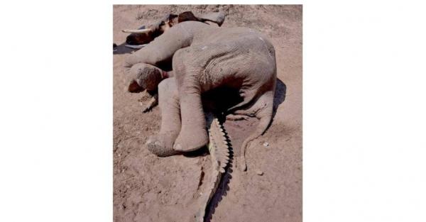 معركة شرسة بين تمساح وفيل تنتهي بلقطة "مأساوية"