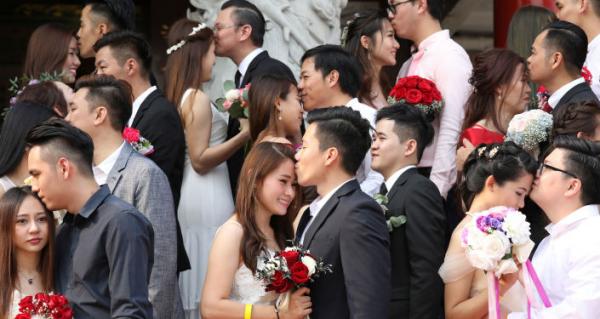 حفل زفاف جماعى في ماليزيا لـ99 زوجا لسبب غريب