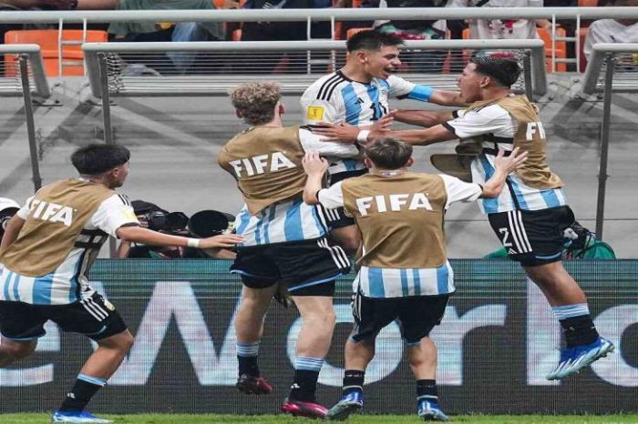 تأهل منتخب الأرجنتين إلى الدور نصف النهائي من بطولة كأس العالم للناشئين، بعد الفوز على غريمه التقليدي البرازيل 3-0، خلال المباراة التي جمعت الفريقين بملعب مدينة جاكرتا ضمن مباريات دور ربع النهائي لمنافسات كأس العالم للناشئين تحت 17 سنة الذي يقام في إندونيسيا.ويدين منتخب الأرجنتين بهذا الفوز إلى نجمه الواعد كلاوديو إتشيفيري الذي سجل الثلاث أهداف "هاتريك" في الدقائق 28 و58 و71 على الترتيب.وبذلك يصطدم منتخب الأرجنتين بنظيره منتخب ألمانيا في الدور نصف النهائي، بعد أن تغلب المانشافت على إسبانيا اليوم الجمعة 1-0.وكان المنتخب البرازيلي قد تأهل لدور ربع نهائي بعدما هزم الإكوادور في دور الـ 16 بنتيجة (3-1) على ستاد مانهان، بينما أكتسح منتخب الأرجنتين منتخب فنزويلا بخماسية نظيفة بذات الدور على ستاد جالاك هاروبات سوريانج.كان منتخب الأرجنتين الأول قد اقتنص فوزًا صعبًا من أنياب مضيفه البرازيل بنتيجة 1-0 خلال فعاليات المباراة التي أقيمت بينهما فجر الأربعاء على ملعب استاد ماراكانا، ضمن منافسات الجولة السادسة لتصفيات أمريكا الجنوبية المؤهلة لـ كأس العالم 2026 التي تستضيفها الولايات المتحدة وكندا والمكسيك.