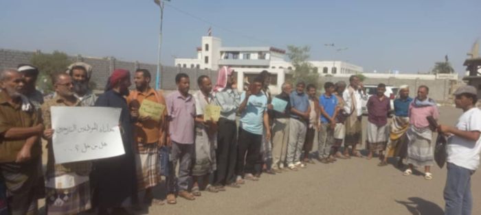 وطالب المحتجون مجلس القيادة الرئاسي والجهات الحكومية المعنية بسرعة التدخل والعمل على صرف مستحقاتهم المالية المتأخرة، منذ عشرة أشهر.